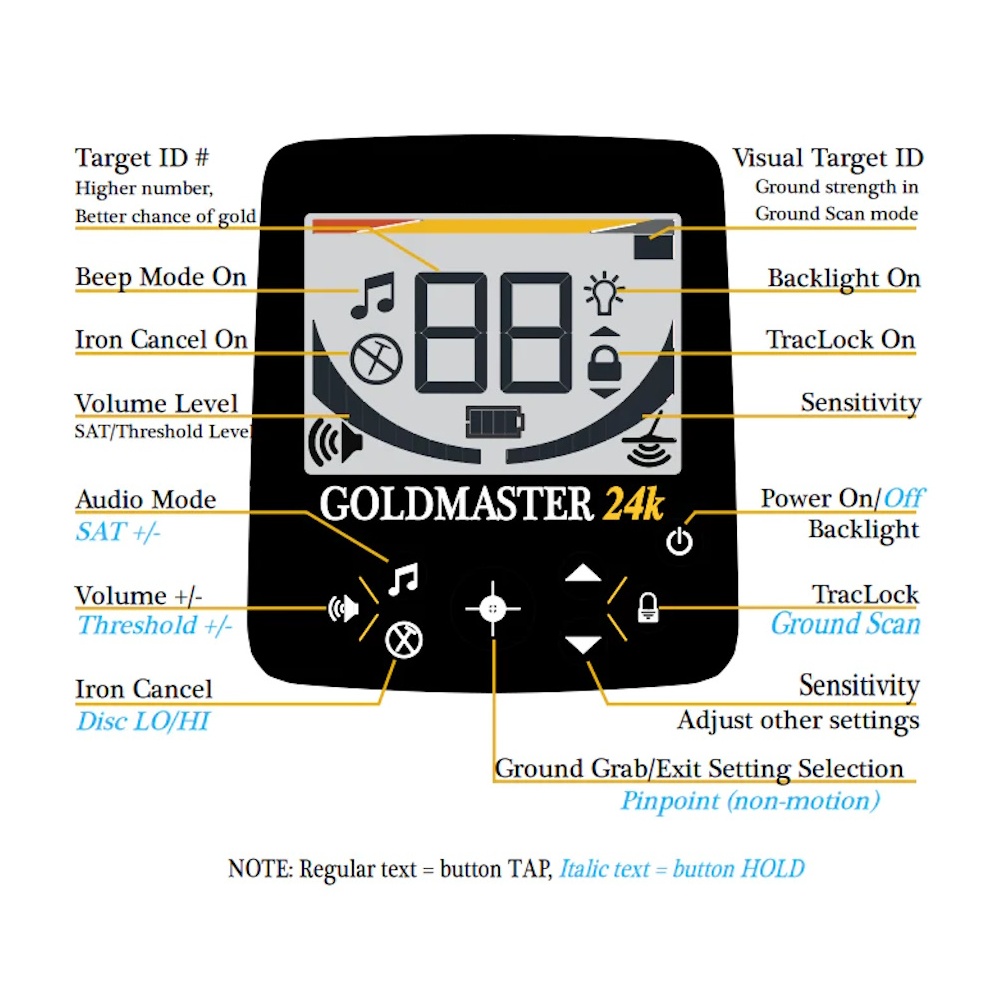 User Controls/Functions – Audio Mode, Volume, Iron Cancel, Battery Condition Indicator, Backlight, TracLock, Ground-Sync, Pinpoint.