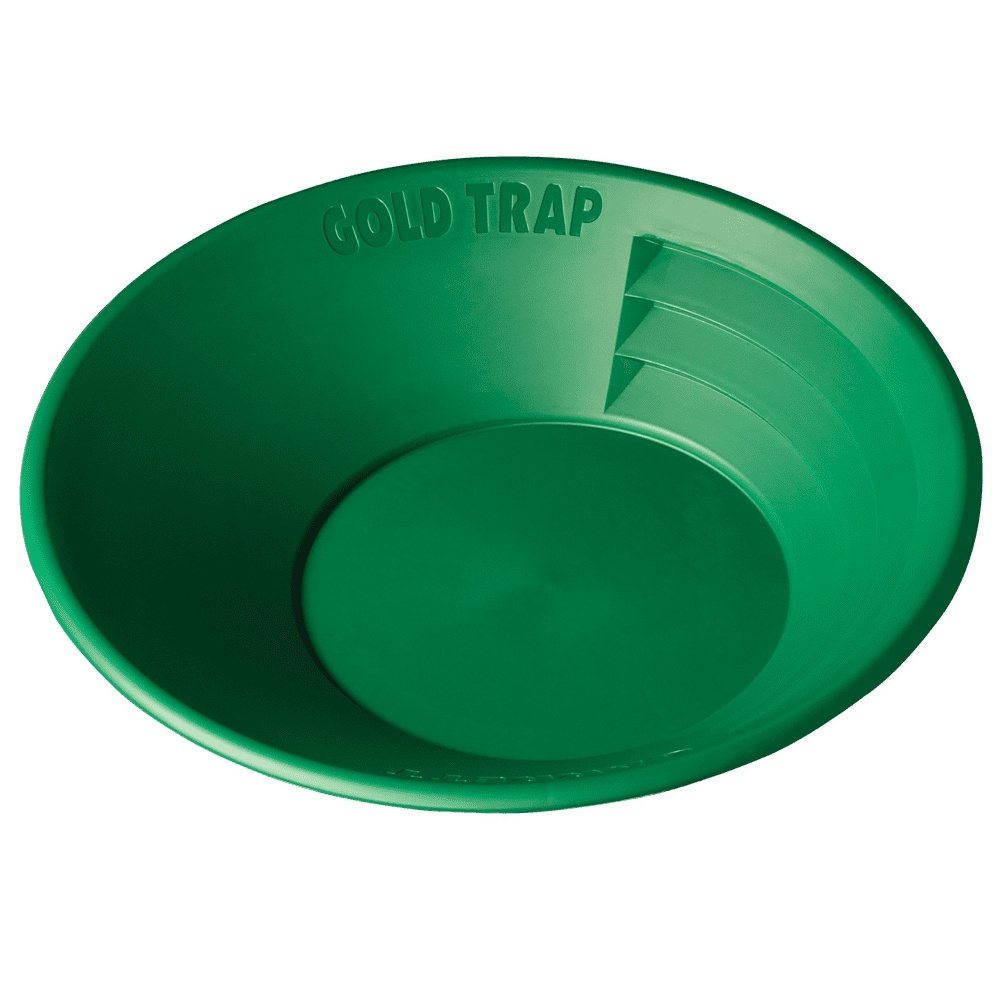 Garrett’s world famous Gravity Trap gold pan series has led the industry for 30 years. Garrett’s gold pans feature a 90° riffled design that ensures safe, sure, rapid gold recovery in wet or dry conditions. All Garrett pans are lightweight, green for enhanced gold nugget visibility, and virtually indestructible. Now, A New Offset, Acentric Patent Pending Design Delivers Improved Performance! The pan’s floor size has been expanded by 33%, compared to the prior version. The Garrett Gold Trap pan includes a long panning surface and optimum angle for effective panning. The design allows gold to be driven down more efficiently to large floor space, and the larger pan volume allows more material to be processed per pan.