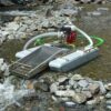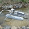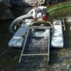 This Keene 4 inch dredge has all of the features you would expect from a larger dredge but in a more compact model. Four inch dredges are ideal for the prospector requiring a light, portable dredge with capacity to move larger amounts of material than smaller backpack dredges. Experience the recovery features of professional dredges in this package with a jet flare to slow the water before it enters the box, for better gold recovery. The oversized power jet employs a quick coupler that clamps over the suction hose, helping to eliminate a common clogging point when hoses are clamped over a jet. The 4400PH gold dredge model comes with a GX200 Honda engine with Keene P180 pump, 20 feet of 4″ suction hose and a 16″ x 40″ sluice box. The steel frame with two tough marlex floats breaks down for compact transportation. Net weight 170 lbs.