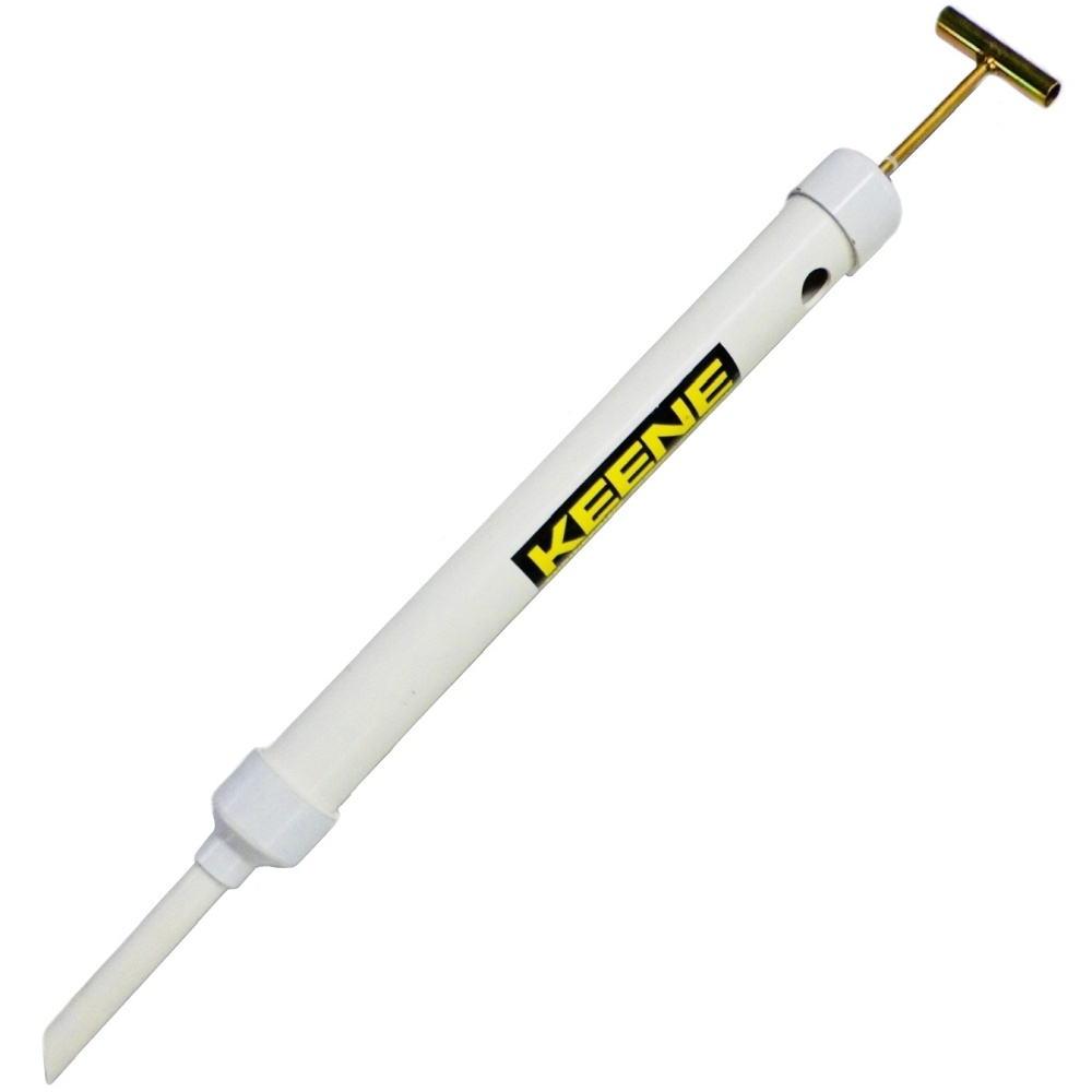 The Keene Super Crevice Sucker is an excellent tool for cleaning out water filled pockets and crevices both above and below water. It even can be used to vacuum loose dry material out of hard to clean locations. The A23 models has a 3″ diameter vacuum chamber with a long draw plunger that produces good suction with plenty of volume. A hole on the upper end reduces backpressure and doubles as an easy dump port for your collected material. The 12″ removeable crevice tip features an inset tube much like that seen on snuffer bottles that keeps collected gold from escaping. The vacuum tube can also be used without the crevice tip to draw up larger gravel from underwater and hold it by rapidly inverting the tube, then dumping in a bucket or sluice box.